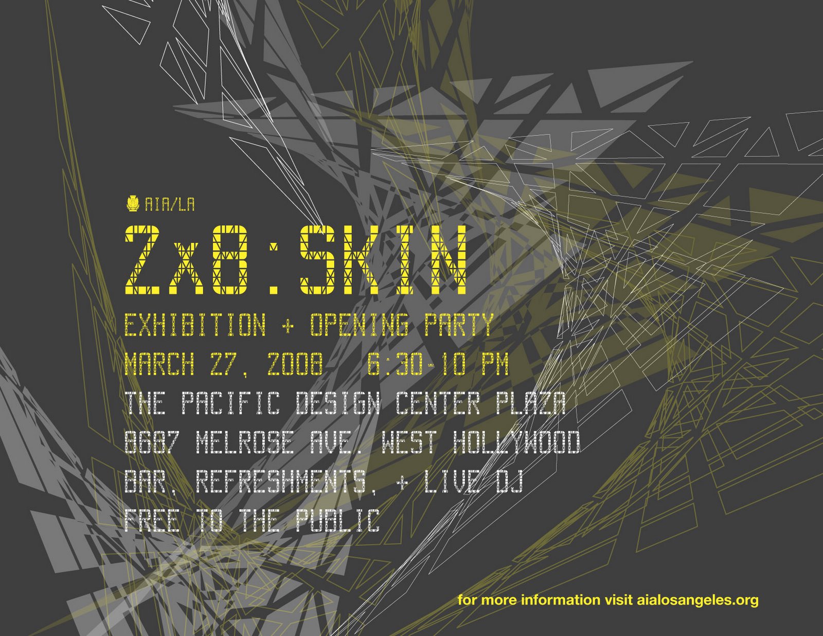 El 27 de Marzo se llevara acabo el evento 2×8 organizado por el AIA de Los Angeles, Expo que muestra los trabajos de las diferentes escuelas de arquitectura de LA y SD. En esta version estaran participando y representando a Woodbury University San Diego dos de mis alumnos, Siavash Sassani y John Snider. La Expo es en el Pacific Design Center de LA. Para mas info ver la pagina: http://aialosangeles.org/students/twobyeight.html