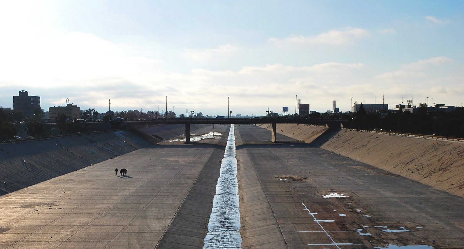 Today Tijuana has a new, transplanted urban center and a diametrically distinct peripheral New Tijuana to the east. The Zona Río (River Zone) is where the Tijuana River once flowed and the place where the first two important leisure infrastructures, the Racetrack and Casino were built, initiating an economic boom for Downtown. The river had always been a force to contend with; its natural force once destroyed the first racetrack and many bridges. It became an area where informal settlements, for the first time, developed into a radical social force. Since the 1940’s squatters along the river had defied the authorities, and government-enforced relocations never worked. Up to the 1970’s these settlements were known as Cartolandia (‘Carton-land’) for the material employed to build the small housing shacks. After a severe flood, Cartolandia lost the struggle for survival, and its inhabitants were relocated to make way to a new vision for the city. A new urban plan included tree-lined boulevards, a cultural center, and a large concrete channel that would prevent further flooding of the Tijuana River. The plan was drafted in Mexico City by renowned urban planner Pedro Moctezuma following a request from the federal government to Mexicanize Tijuana. “Tijuana is not Mexico” Raymond Chandler wrote in The Long Goodbye, and to the Mexico City authorities Tijuana lacked a sense of national identity and presented to foreign visitors a strong rupture with what was perceived as ‘Mexican.’ A wide boulevard was proposed, similar to the Paseo Reforma in Mexico City, with roundabouts and large-scale statues of national heroes intended to bring national pride to the border. The concrete channel bisected two of the original communities of the city; Downtown and Colonia Libertad, TJ’s first neighborhood. The channel erased the river and ruined any chance that the city could relate to its core natural amenity.