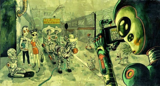 Hacia el final, el plan presenta a los desarrolladores una fantasía urbana vertical y, al mismo tiempo, una perspectiva incosteable para la población proyectada a futuro, que muy improbablemente ocupará el centro de la ciudad, sino más bien su lado oriente, pues ganará cien dólares al mes trabajando en las maquiladoras. Bueno, pero seamos un poco optimistas: supongamos que la proyección se refiere a gente como yo, tijuanenses transfronterizos, que formamos como 8% de la población y que con nuestros sueldos sandieguinos podemos costear un loft en el piso 20 sobre Avenida Revolución. No, esto es poco probable, puesto que este sector de la población no parece estar aumentando, debido a las estrictas leyes migratorias para obtener visas laborales en Estados Unidos.