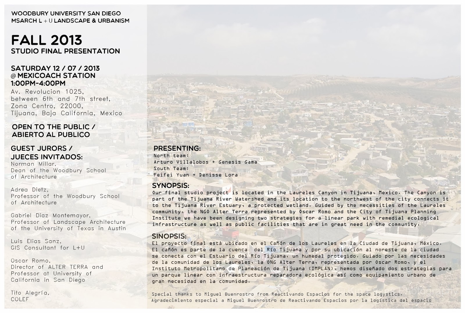 La ceremonia de presentación fue inaugurada con una palabras oficiales del alcalde de Tijuana, Carlos Bustamante, quien mencionó brevemente la importancia del plan conceptual y le aseguró al público que lo respaldaría el alcalde de San Diego, Bob Filner, puesto que ahora la alcaldía de San Diego tiene una oficina en Tijuana. Sin embargo, el señor Filner no estuvo presente para corroborarlo. Bustamante abandonó el evento inmediatamente después de sus comentarios inaugurales: quizás tenía una agenda apretada ese día o simplemente quiso evitar los reclamos de algunas personas del público referentes a la demolición de La Ocho.