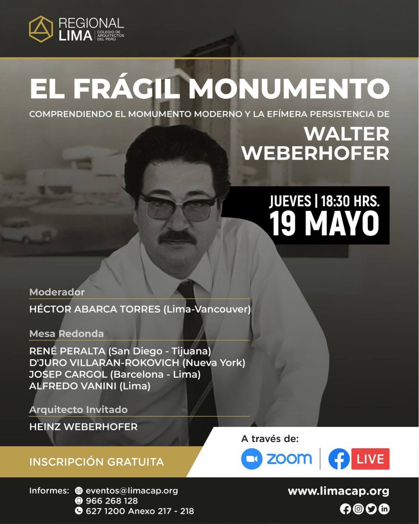 As part of the activities associated with the Institute of Architects of Peru, Lima chapter, Peruvian architect and historian Hector Abarca Torres invited five international architects on May 19, 2022, to discuss the work of Walter Weberhofer, one of Peru’s most important modernists. Abarca-Torres organized and moderated the online session, which included Walter Weberhofer’s son, Heinz Weberhofer.