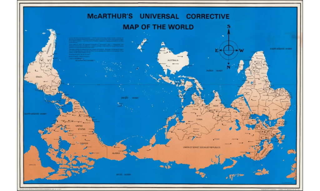 Stuart McArthur map pf 1979_turns the world upside down.Vertical Metaphors