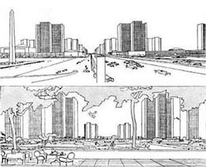 Le Corbusier’s utopia of a more just vertical city was drawn in his Radiant City Plan. He believed that architecture could bring social change, that architecture was powerful enough to produce a universal subject. He thought modernism was a better idea than Revolutions. As Frederick Jameson wrote, ‘he (Corbusier) saw the construction and the constitution of new spaces as the most revolutionary act, and one that could ‘replace’ the narrowly political revolution of the mere seizure of power.’