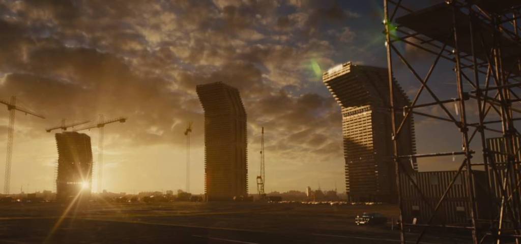 Deckard and Rachel escape the city in the Theatrical Cut of Blade RunnerHigh Rise is a film that portrays the perils of modernism failed towers in the park and its universal user. The Brutalist buildings house middle- and upper-class occupants are enjoying the fantasy that only a vertical metaphor can give you. The building dominates its inhabitants to the point of delusion and psychosis. The building is a metaphor for what will go wrong.