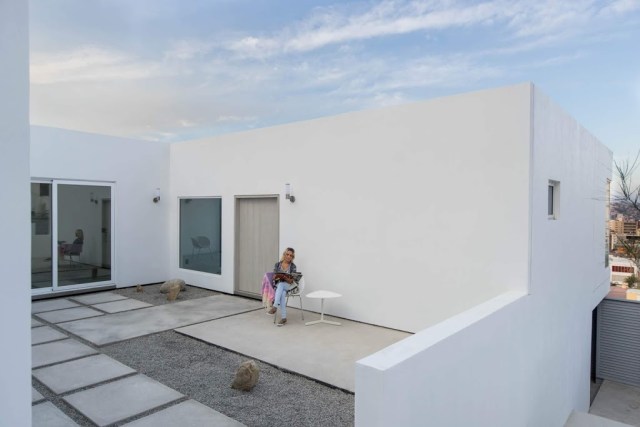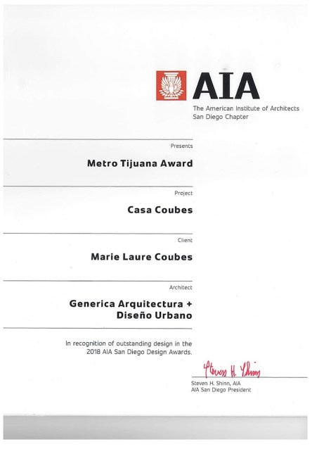 Casa Coubes – AIASD 2018 AwardTijuana 20182018 American Institute of Architects San Diego “Metro Tijuana Architecture Award”A 3-patio house on a hillside of the city of Tijuana. The house takes advantage of the city views to the east with a linear balcony, then it centers around an entry courtyard that allows natural light to penetrate all the interiors. The hillside helps to create a small garden and green roof for the guest bedroom and studio space. The house is in a constant dialogue between the inside and outside.Designed for a social scientist the house is an interplay of layered spaces. Rendered in white allowing the interior to be a canvass of natural color throughout the day. All of its inhabited open spaces lay in a seamless second-floor level that moves from interior to the exterior as daily life progresses. -