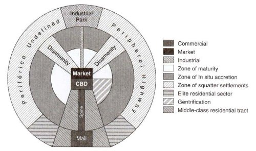Tijuana in terms of urban planning is a typical Latin American city organized with central zones and radial sectors as described in the Griffin and Ford model.