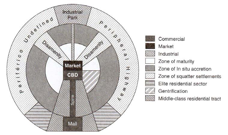 Tijuana in terms of urban planning is a typical Latin American city organized with central zones and radial sectors as described in the Griffin and Ford model.